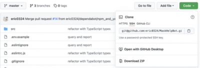 首先我們在我們要使用的 GitHub remote repository 上,點選 code ,改用 SSH ,就會取得一段 remote url