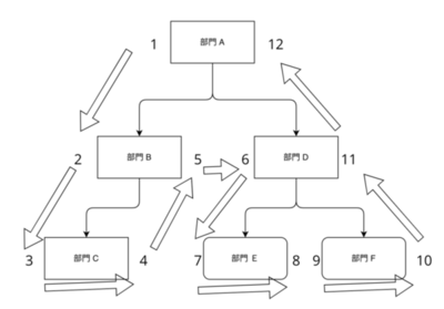 這個解決方法,在樹的更新上站有些優勢。例如,我們在 F 部門加上一個 G 部門: