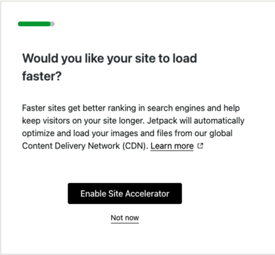 九、接著是問你要不要讓網站快一點,使用 Jetpack 提供的 CDN。這邊也是看你有沒有這個需求,試情況打開。