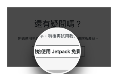 四、接著 Jetpack 會提供我們一堆超好用的超值服務,大家可以按需求加購。如果不要也沒關係,我們可以直接點選開始使用 Jetpack 免費版。