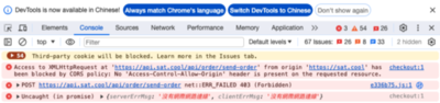 我試著打開開發人員工具看看,呼叫後的錯誤訊息。Network 會出現 has been blocked by CORS policy: No ‘Access-Control-Allow-Origin’ header is present on the requested resource. 的問題。