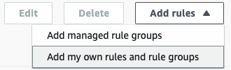 既然,不能用的話,我們就自己設定規則,我們到 Rules 標籤,點選 Add rules ,點選 Add my own rules and rule groups 。