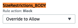 接著回到 Rules , 找到 AWS-AWSManagedRulesCommonRuleSet ,點進去後,點到 SizeRestrictions_BODY,編輯他的值(透過下拉選單選擇)必須為 override to allow 或是 override to count。